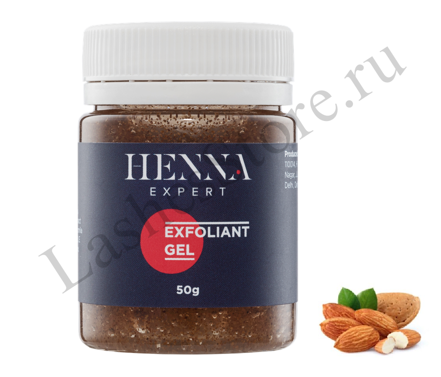 Миндальная крошка в составе скраба обеспечивает мягкий разглаживающий пилинг, убирая омертвевшие клетки кожи, после которого хна ложится ровно без пятен и пробелов.