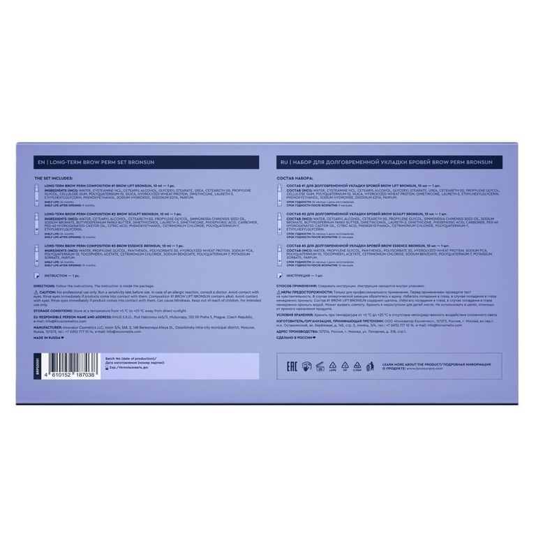 Состав #3 для долговременной укладки BROW ESSENCE BRONSUN используется на завершающем этапе процедуры долговременной укладки. Удобная гелевая консистенция позволяет зафиксировать финальную форму бровей, не склеивая волоски.
