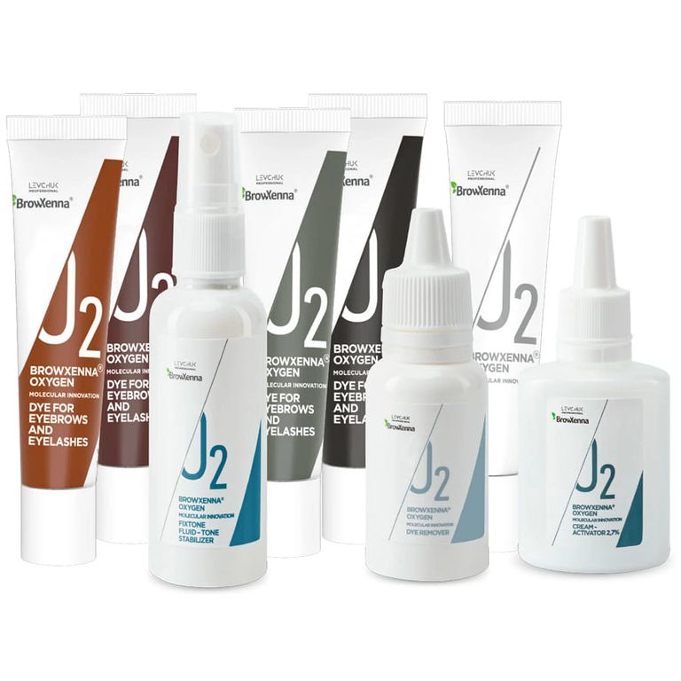 В неметаллической емкости смешайте краску OXYGEN J2 и крем-дилютер – пропорции будут зависеть от желаемого оттенка – варианты возможных тонов можно найти в инструкции в упаковке. После этого к окрашивающей смеси OXYGEN J2 добавьте крем-активатор 2,7% и приступайте к процедуре.